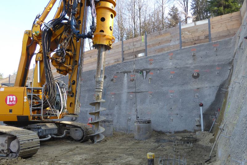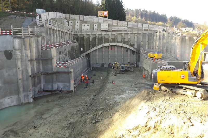 Die Nordumfahrung Zürich gehört zu den am stärksten befahrenen Strassenabschnitten der Schweiz: Mehr als 120‘000 Fahrzeuge rollen täglich über die Autobahnstrecke zwischen dem Limmattalerkreuz und der Verzweigung Zürich Nord. Um die Kapazität zu erhöhen, wird eine 3. Röhre erstellt. Bevor jedoch der Tunnel im Sprengvortrieb aufgefahren werden konnte, mussten beidseitig die Portalbereiche ausgehoben und die Ortsbrust gesichert werden. Dazu waren bis zu 26.5 m hohe Anschnitte in anspruchsvollen geologischen Verhältnissen erforderlich. Diese wurden über Nägel- und Ankerwände sowie rückverankerte Bohrpfahlwände gesichert und werden permanent überwacht.